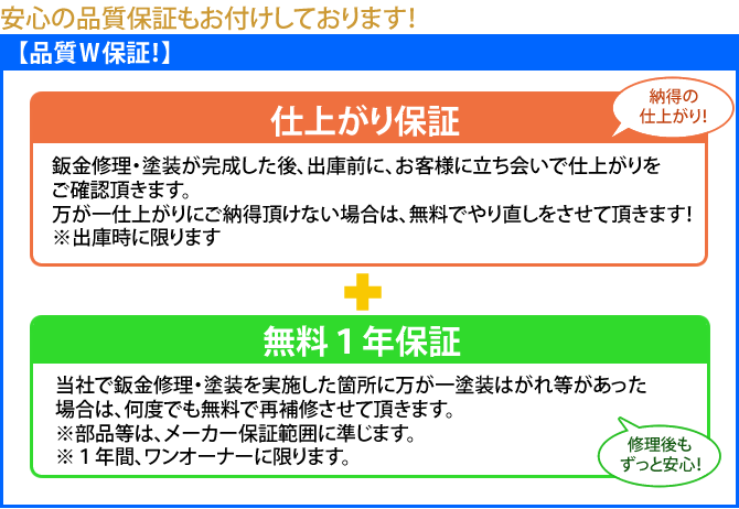 また、当店で実施した修理箇所については、無料保証を付けさせて頂きます。
